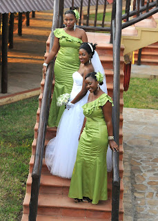 | Maharusi wakiwa na wasimamizi wao. Best man na Matron |